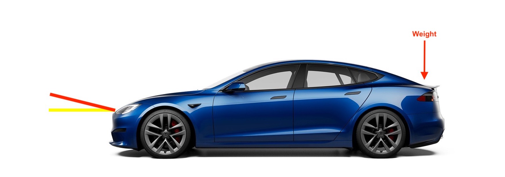 When I began in 2015, I developed Tesla's very first automatic headlamp leveling system on the Model S. This system uses ride height sensors to automatically adjust the aim of the headlamps based on the height difference between the front and rear of the car: